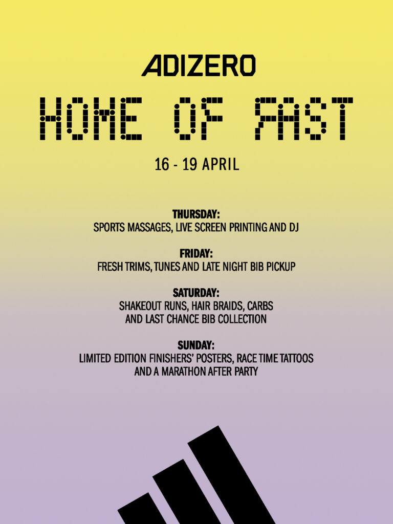 The marathon returns in April to take over Manchester – and adidas Market Street, Manchester is turning into the adizero: Home of Fast. A place for runners to meet, prepare and get marathon ready, together.