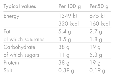 Protein Blend (43%) [Milk Protein Isolate, Partially Hydrolysed Whey Protein Isolate (Soy Lecithin) (Milk), Soy Protein Isolate, Whey Protein Isolate (Emulsifier: Sunflower Lecithin) (Milk)], EnergySMART® Syrup (Rice Syrup, Grape Juice Concentrate), Humectant [Glycerol], Couverture Milk Chocolate with Sweetener (14%) [Sweetener (Maltitol), Cocoa Butter, Whole Milk Powder, Cocoa Mass, Emulsifier: Lecithins (Soya), Natural Vanilla Flavouring], Water, Natural Flavouring, Fat-Reduced Cocoa Powder.