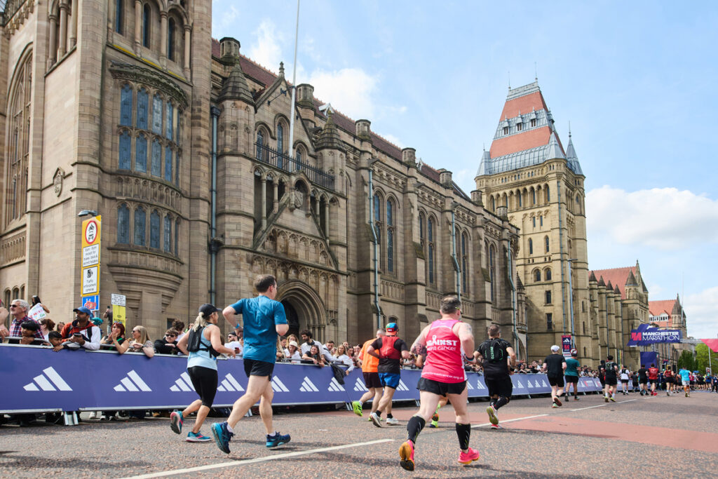 You will finish on Oxford Road, experiencing the full marathon finish line. All participants will receive the 2026 adidas Manchester Marathon medal and finisher T-shirt.