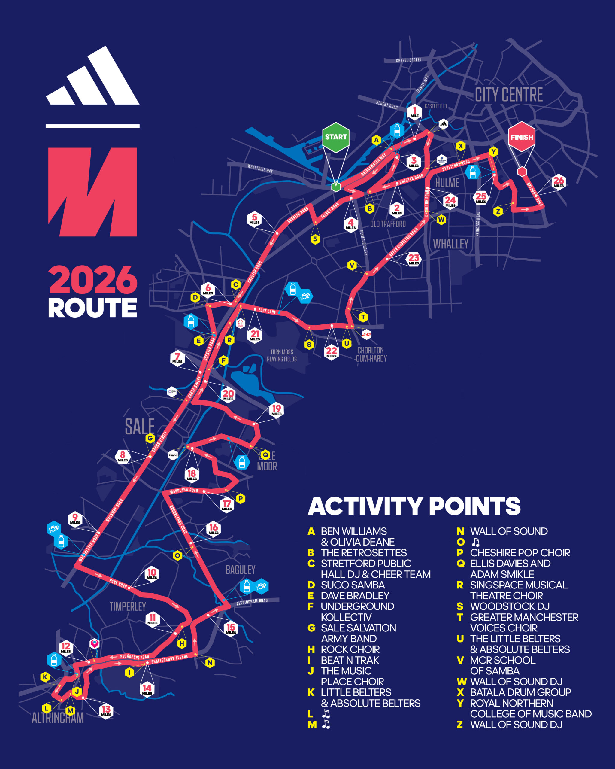 We’ll be taking over Deansgate Interchange with a big screen, crowds of supporters, and an adidas DJ truck playing music and sharing supporter messages. It’s set to be a brilliant atmosphere, giving participants a real boost as they head out onto their 26.2 mile challenge.