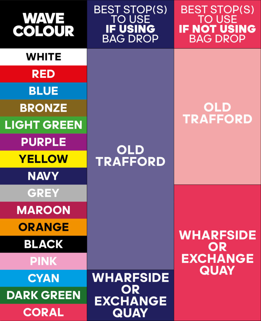 If you are planning to arrive for the start of your wave prior to 9:30am we would advise you to arrive at Old Trafford tram stop or Trafford Bar and walk 10 minutes to the start area (Bag Drop, Toilets and start access area) located outside Manchester United’s Old Trafford stadium.